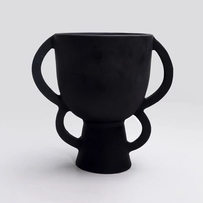 Handmade terracotta vase, revisits traditional objects with contemporary artistic forms.